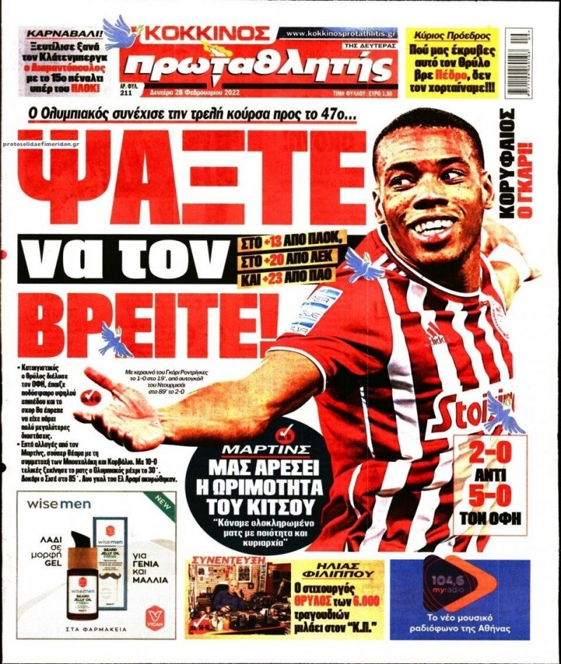 Το πρωτοσέλιδο του Κόκκινου Πρωταθλητή (28/2)