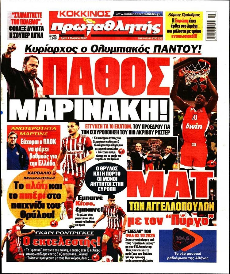 Το πρωτοσέλιδο του Κόκκινου Πρωταθλητή (1/3)
