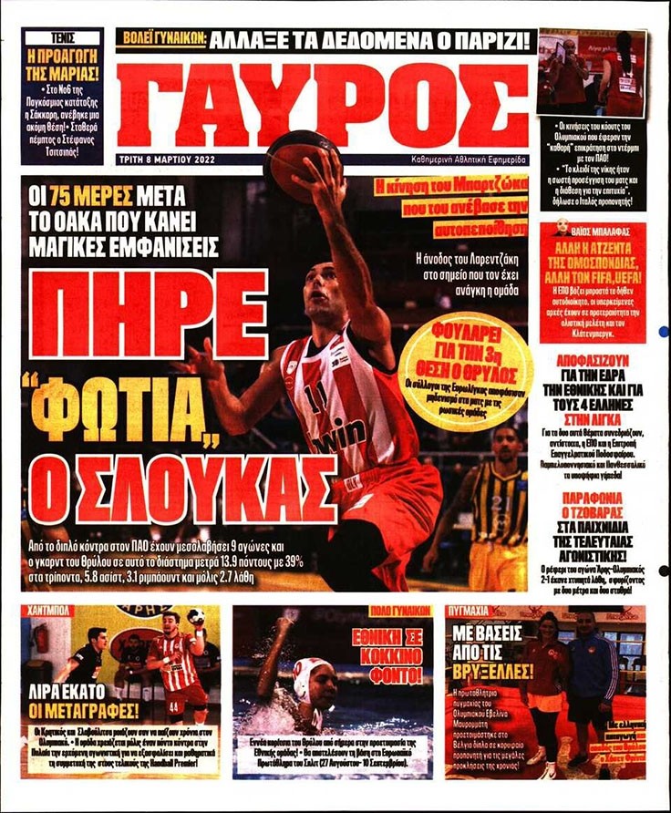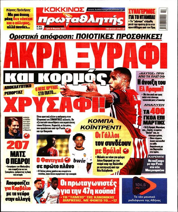 Το πρωτοσέλιδο του Κόκκινου Πρωταθλητή (8/3)