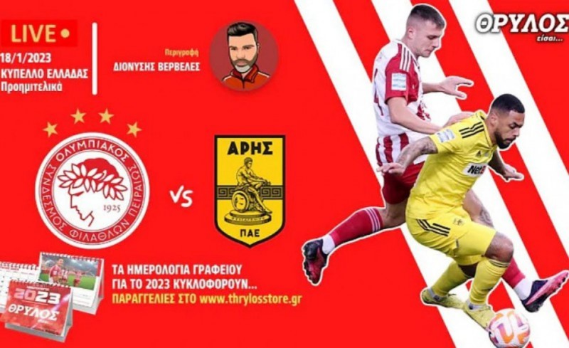 Ώρα Κυπέλλου Ελλάδας για τον Ολυμπιακό που υποδέχεται τον Άρη στο «Γεώργιος Καραϊσκάκης», για τα προημιτελικά! Το «ΘΡΥΛΟΣ είσαι…» με τον Διονύση Βερβελέ, πιστό και σε αυτό το ραντεβού, στις 18.45 θα είναι στον αέρα για το σχολιασμό της αναμέτρησης και την περιγραφή των καλύτερων στιγμών!