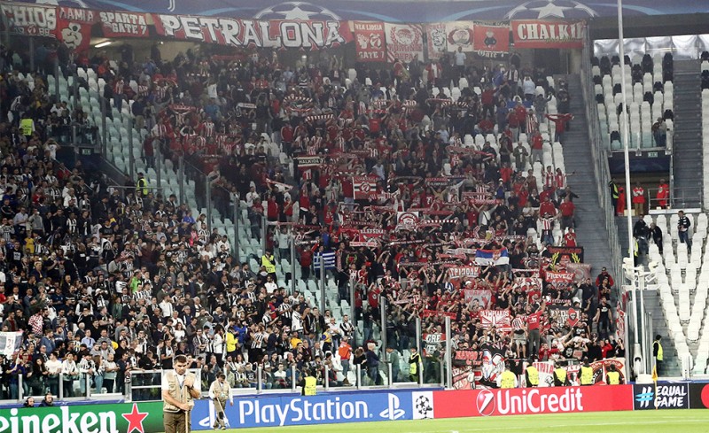 Δυναμικό «παρών» στο «Allianz Stadium» δίνει ο κόσμος του Ολυμπιακού, ο οποίος στηρίζει τις προσπάθειες της ομάδας σε αυτό το εκτός έδρας παιχνίδι με τη Γιουβέντους.