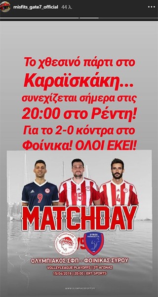 Δείτε το μήνυμα των Misfits: «Το χθεσινό πάρτι στο Καραϊσκάκη συνεχίζεται σήμερα στις 20:00 στο Ρέντη! Για ο 2-0 κόντρα στο Φοίνικα! ΟΛΟΙ ΕΚΕΙ»!