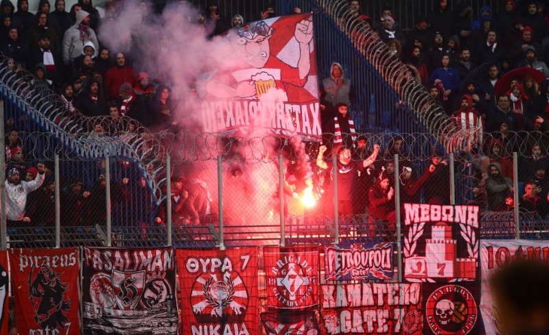 Πριν καν την έναρξη της αναμέτρησης, ο λαός των Πειραιωτών κατάφερε να κερδίσει κατά κράτος τη «μάχη» της εξέδρας, δίχως να σταματά δευτερόλεπτο να τραγουδά συνθήματα.