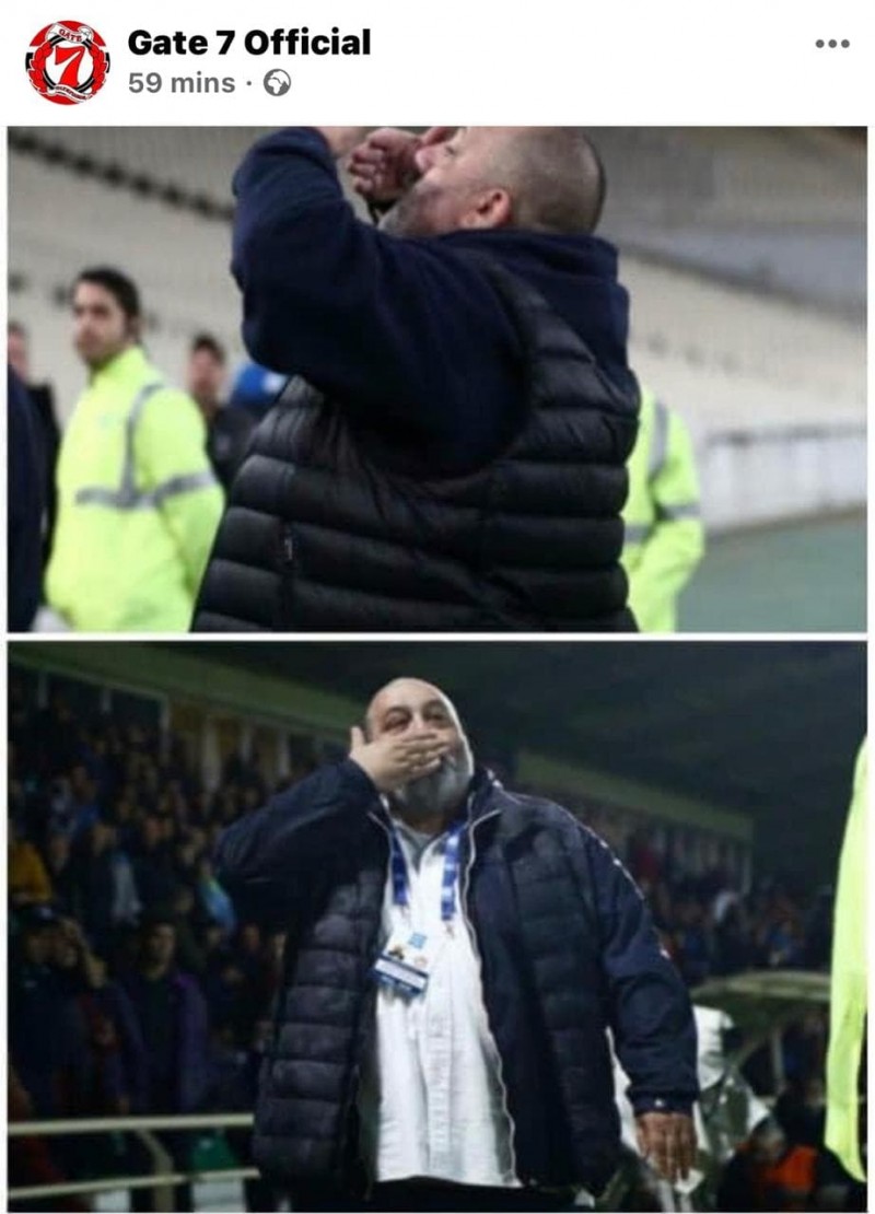 Συγκεκριμένα, οι οργανωμένοι οπαδοί του Θρύλου δημοσίευσαν φωτογραφία του Κώστα Καραπαπά ο οποίος μοιράζει... φιλάκια!