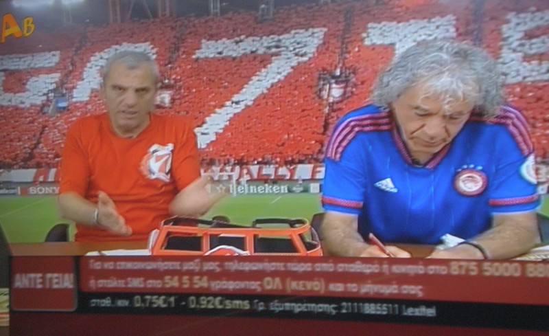 Δύο φορές την εβδομάδα, Δευτέρα και Παρασκευή, στις 23:30, η εκπομπή του κόσμου του Ολυμπιακού με τον Άκη και τον Τάκη παίζει ζωντανά, τηλεοπτικά, μέσα από τη συχνότητα του καναλιού ΑΒ.
