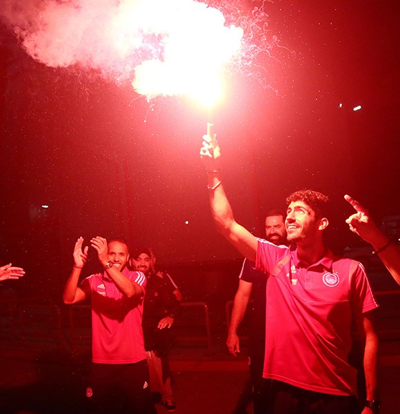 Εκεί, χειροκροτήθηκαν και αποθεώθηκαν οι θριαμβευτές. Οι παίκτες, ο Πέδρο Μαρτίνς και, φυσικά, ο ηγέτης του μεγαλύτερου ελληνικού συλλόγου, Βαγγέλης Μαρινάκης.