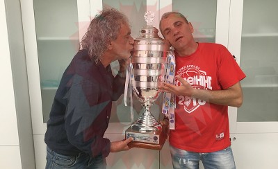 Το τρόπαιο του πρωταθλητή στο μπάσκετ έχουν για παρέα, ο Τάκης με τον Άκη.