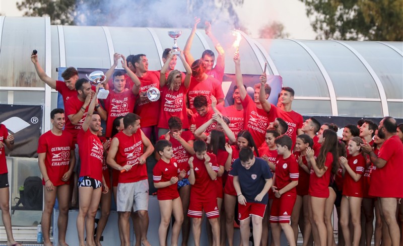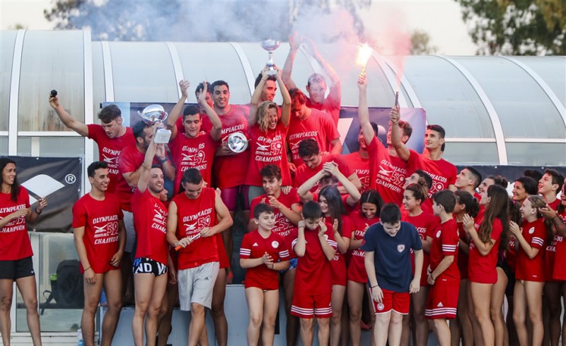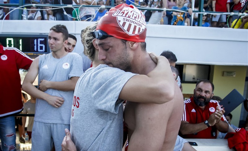 Με την ψυχή τους χάρηκαν οι αθλητές του Ολυμπιακού το τρεμπλ στην Κολύμβηση, στο Πανελλήνιο Πρωτάθλημα που διεξήχθη στο κολυμβητήριο Αλίμου.
