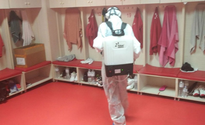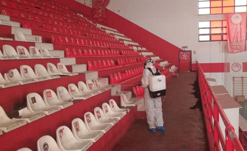 Για την ακρίβεια, πραγματοποιήθηκε απολύμανση στις εξέδρες, στο γυμναστήριο, στο ιατρείο, στα αποδυτήρια, στα γραφεία και στον αγωνιστικό χώρο, ενώ όπως προαναφέραμε απολύμανση έγινε και στους εξωτερικούς χώρους.