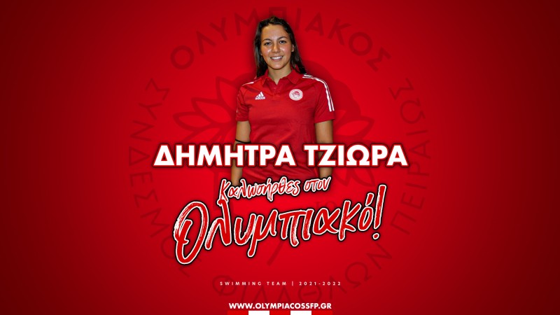 Ο ΟΛΥΜΠΙΑΚΟΣ Σ.Φ.Π. ανακοινώνει την έναρξη της συνεργασίας του με την Δήμητρα Τζιώρα. Η νεαρή αθλήτρια (ημ. γέννησης 4/6/1999) εντάσσεται στο δυναμικό του αγωνιστικού τμήματος Κολύμβησης του Συλλόγου μας.