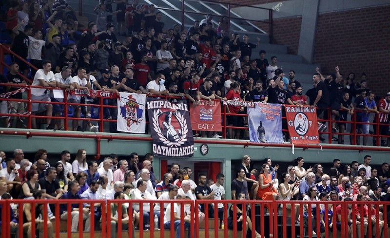 Οι «ερυθρόλευκοι» οπαδοί βρέθηκαν στο πλευρό της ομάδας του Γιώργου Καρασαββίδη, στο Κλειστό Γυμναστήριο Ηλιούπολης, τραγουδώντας από το πρώτο μέχρι το τελευταίο λεπτό και βοηθώντας τους Πειραιώτες να φτάσουν στην κούπα.