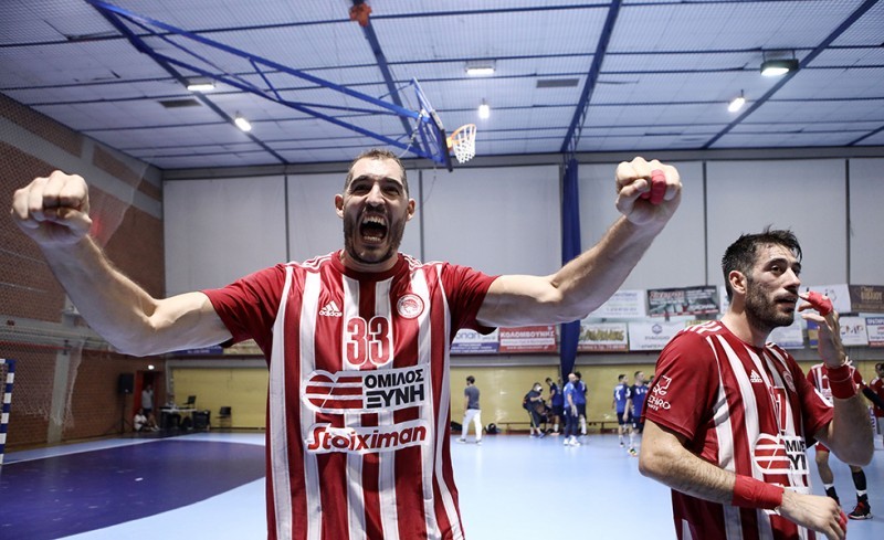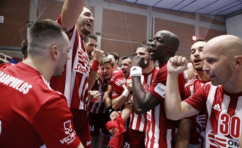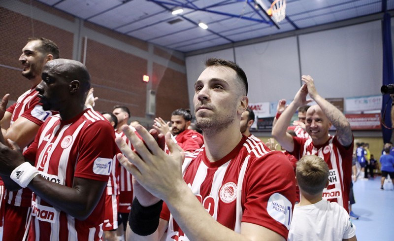 Σε πανηγυρισμούς, μαζί με τον κόσμο του Θρύλου, ξέσπασαν οι παίκτες της υπερ-πρωταθλήτριας ομάδας χάντμπολ του Ολυμπιακού, που κατέκτησε το Σούπερ Καπ Ελλάδας, νικώντας την Πυλαία με σκορ 30-24.