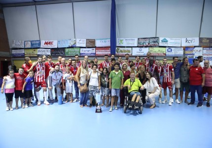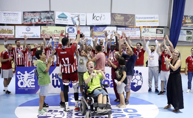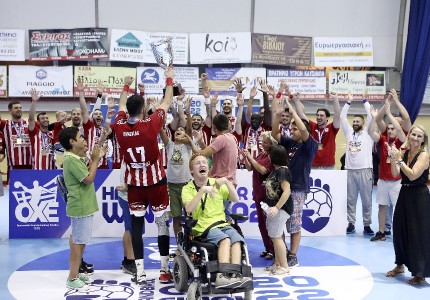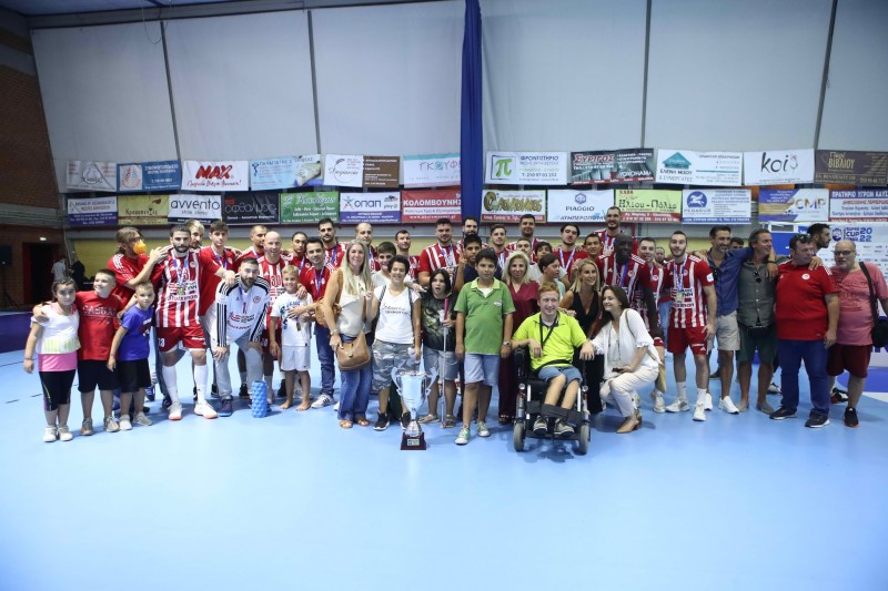 ΟΙ «ερυθρόλευκοι», εκτός του ότι πανηγύρισαν μαζί με τον πύρινο κόσμο του Θρύλου την κατάκτηση του τροπαίου, σήκωσαν την κούπα, μαζί με τα παιδιά που φιλοξενεί το ΠΙΚΠΑ Βούλας, στα οποία ήταν αφιερωμένος ο φετινός τελικός.