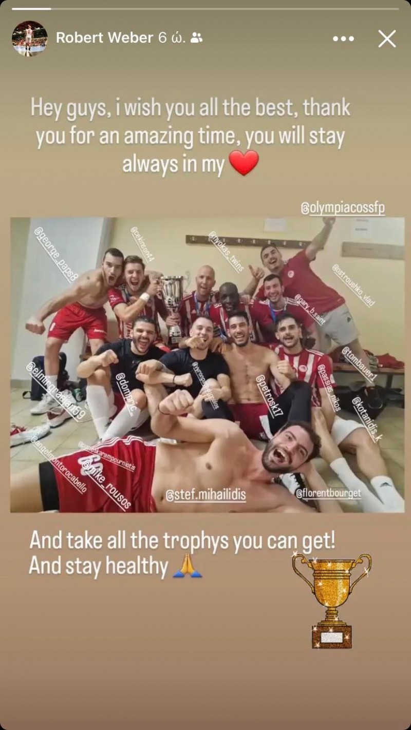 Συγκεκριμένα, ο Βέμπερ έγραψε: «Παιδιά σας εύχομαι τα καλύτερα, ευχαριστώ για την φοβερή ώρα, θα μείνετε για πάντα στην καρδιά μου! Και κατακτήστε όλα τα τρόπαια που μπορείτε! Και να μείνετε υγιείς!».