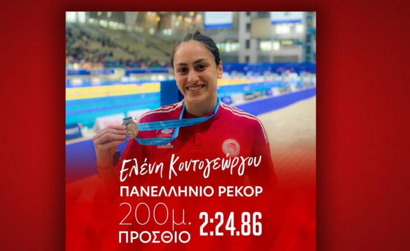 Σπουδαία εμφάνιση που συνοδεύτηκε με πανελλήνιο ρεκόρ γυναικών και νέων γυναικών, έκανε η κολυμβήτρια του Ολυμπιακού, Ελένη Κοντογεώργου στα 200μ. πρόσθιο με επίδοση 2:24.86, κατά τη διεξαγωγή της Α΄ αγωνιστικής του 2ου Κολυμβητικού Αγώνα Επιδόσεων- 2ο σκέλος (κολ. 25μ.) στο Χαλάνδρι. Η Κοντογεώργου κατέρριψε το ρεκόρ της Αγγελικής Εξάρχου η οποία το κατείχε από το 2009 με επίδοση 2:25.03.