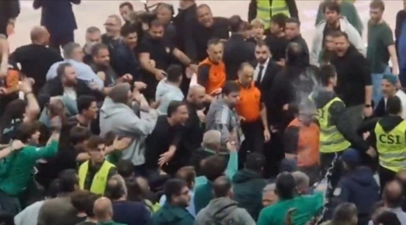 Υ.Γ.3… Όχι εγώ… αυτός. Τον έβαλε ο Μπαρτζώκας να διακόψει το παιχνίδι. Δεν τον έχω ξαναδεί σε παιχνίδι μας. Μα τον Αλλάχ στο ορκίζομαι. Να συλληφθεί, να απομακρυνθεί από το γήπεδο, και να του αφαιρεθεί το δικαίωμα εισόδου δια παντός. Μην κοιτάτε που το παίζει έκπληκτος λες και δεν έχει κάνει τίποτε.