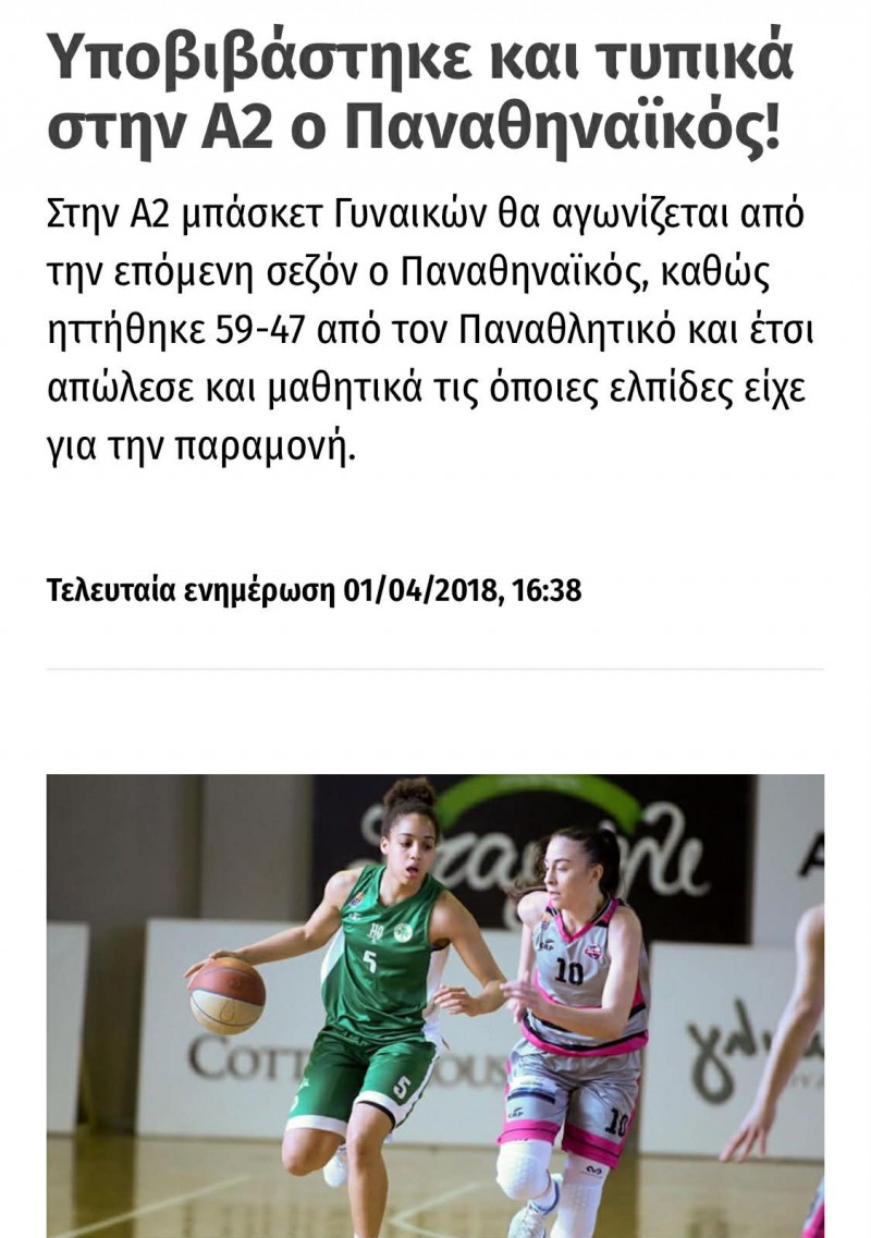Επιλέξανε η όχι να υποβιβάσουν και το Βόλεϊ γυναικών, το μοναδικό τους ερασιτεχνικό τμήμα που έχει περισσότερα ΜΟΝΟ Πρωταθλήματα, από τον Ολυμπιακό που υπερτερεί σε Κύπελλα, Σούπερ Καπ , έχοντας πάει σε 2 Ευρωπαϊκούς τελικούς και έχοντας ένα Ευρωπαϊκό τρόπαιο; Και όλα αυτά μόνο τα τελευταία χρόνια όταν ασχολήθηκε σοβαρά η «αποτυχημένη» μωρέ διοίκησης μας. (9-3 στα Πρωταθλήματα, 10-1 στα Κύπελλα και 1-0 στα Σούπερ Καπ).