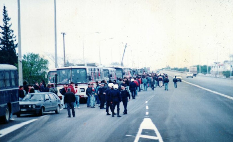 Υ.Γ. ... Οπαδοί της ΑΕΚούλας αψηφώντας την απαγόρευση μετακινήσεων πήγαν στη Θεσσαλονίκη για να δουν έναν αγώνα χάντμπολ. Μπήκαν στο γήπεδο 4 ώρες πριν τον αγώνα. Όταν τους πήραν χαμπάρι 3 διμοιρίες ΜΑΤ τους έβγαλαν από το γήπεδο. Στο γήπεδο ξέχασαν!!! 50 σιδηρολοστούς, 1 μαχαίρι και 2 σιδηρογροθιές!!!