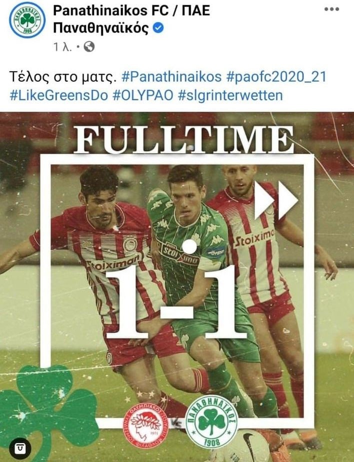 Για αυτό υπάρχει η επίσημη ενημέρωση για να αποκαθιστά την αλήθεια. 1-1 ήρθαμε τελικά μάγκες. Και στην κορυφή της βαθμολογίας δεν είμαστε, και γκολ «φάγαμε» , και βαθμούς «χάσαμε», άσχετα αν σκοράραμε στο α΄ ημίχρονο. Ναι, αλλά δεν σκοράραμε στο β΄. Αυτό που το πάτε; Νομίζω πως είναι ένα θέμα που πρέπει να το προσέξει ο Μάρτινς. Το γεγονός ότι παίξαμε χωρίς σέντερ-φορ, χωρίς αριστερά μπακ, χωρίς αλλαγές στα άκρα της άμυνας και της επίθεσης, ότι απουσίαζαν 11 διεθνείς επί 12 μέρες και δεν έκανε η ομάδα προπονήσεις μέχρι την Πέμπτη, ότι αναγκαστήκαμε να ανεβάσουμε παίχτες από την Κ19 για να κάνουν οι υπόλοιποι , είναι «δικαιολογίες» για την εικόνα της ομάδας από το 65΄και μετά.