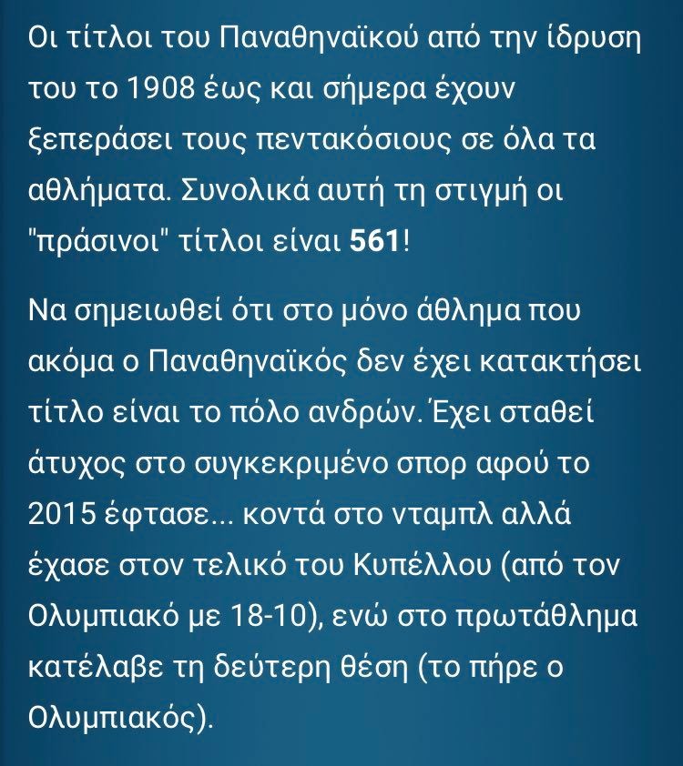 Αυτοί που όταν δεν τους βγαίνουν τα κουκιά, και παίρνουν κούπες με το σταγονόμετρο, «ανακαλύπτουν» απαρχαιωμένες επιτυχίες χωρίς επίσημη αναγνώριση και τις προσθέτουν μόνοι τους στα τρόπαια τους, για να καλύψουν κάπως την διαφορά; Τα ίδια δεν κάνουν μια ζωή; Πουλάνε οπαδιλίκι για να δείχνουν ότι υπάρχουν σε γήπεδα στρούγγες, ασχολούμενοι με λιγότερα τμήματα και αθλήματα , πηγαίνοντας μόνο σε συγκεκριμένους αγώνες.