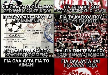 Τα Πρωταθλήματα θα κερδίζονται στα γήπεδα και όχι στα γραφεία των Ομοσπονδιών με τις ψήφους των "δικών" σας. Εντάξει είμαστε λύματα; Εντάξει είμαστε. Από το ποδόσφαιρο μέχρι το πινγκ – πονγκ ( τι σφαλιάρα κ αυτή ρε βόθροι) , και μέχρι τέλους. 98 χρόνια Ιστορίας συμπληρώνονται σήμερα για τον μεγαλύτερο πολυαθλητικό σύλλογο της χώρας, και είμαστε πιο πεινασμένοι από ποτέ για τίτλους, εγχώριους και ευρωπαϊκούς. Πετάξτε όση λάσπη θέλετε. Εσείς κυλιέστε μέσα της σαν τα γουρούνια . Εμάς δεν μας αγγίζει. Και που πλένεστε η μπόχα και η βρώμα που αναδύεται δεν φεύγει. Έχει γίνει ένα με το πετσί σας. Σας κατάντησε ο Θρύλος μίζερους και κομπλεξικούς, να βλέπετε παντού την πλάτη του. Και που να είχαμε και εγκαταστάσεις.