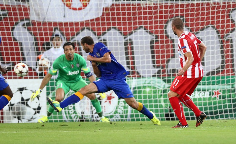 Ο Ντομίνγκες κάνει το άνοιγμα στον Μήτρογλου, εκείνος με τη μία πασάρει στον Κασάμι και ο Ελβετός μέσος με υπέροχο πλασέ, νικάει τον Μπουφόν για το 1-0 στο 36’.