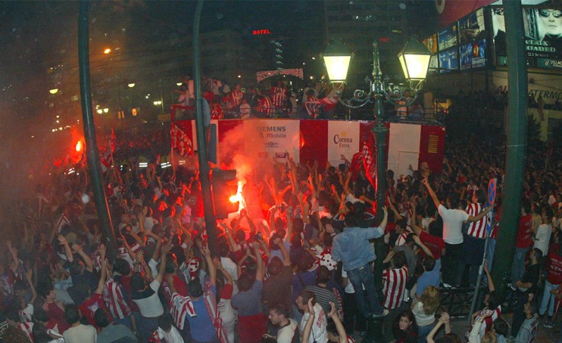 Μερικές ώρες αργότερα, στο κέντρο του Πειραιά, μαζεύονται και πάλι χιλιάδες κόσμου και γεμίζουν τους δρόμους. Αυτή τη φορά είναι για λόγους... γιορτής!
