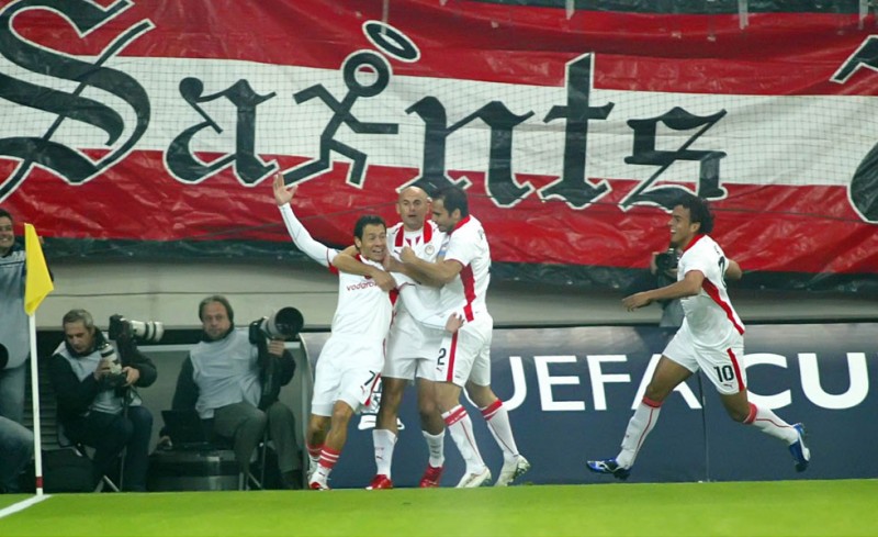 Σε παιχνίδι για την 3η αγωνιστική των ομίλων του UEFA Cup, ο Ολυμπιακός έδειξε από την αρχή ότι δεν είχε... διάθεση για αστεία και προηγήθηκε στο 1' με τον Γκαλέτι!