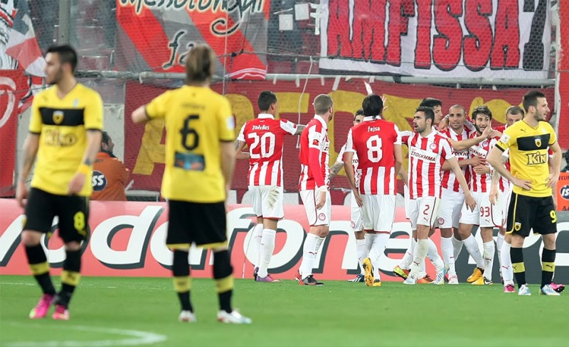 Το παιχνίδι για την 25η αγωνιστική της σεζόν 2012-13 είχε εορταστικό χαρακτήρα για τον Ολυμπιακό, ο οποίος δεν δυσκολεύτηκε καθόλου απέναντι στην ΑΕΚ.