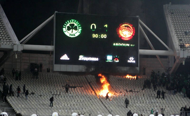 Οι οπαδοί του Παναθηναϊκού δεν άντεξαν τη νέα πίκρα, έκαναν επεισόδια στο ΟΑΚΑ και αυτό είχε ως αποτέλεσμα να διακόψει οριστικά τον αγώνα ο διαιτητής.