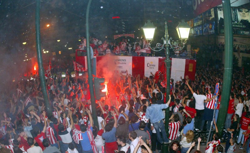 Το κέντρο του Πειραιά γέμισε από το λαό του Ολυμπιακού, ο οποίος πανηγύρισε την κούπα και το χάρηκε με την ψυχή του.