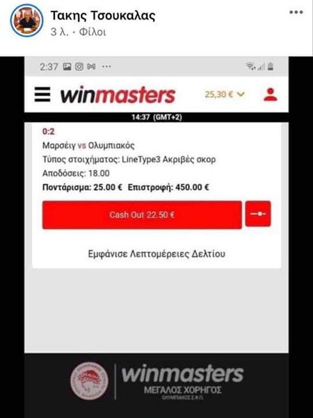 Για την ακρίβεια, ο Τάκης βλέπει 0-2 στο Μαρσέιγ-Ολυμπιακός. Και όχι μόνο το βλέπει, αλλά έχει στηρίξει έμπρακτα την πρόβλεψή του, ρίχνοντας το σχετικό δελτίο του στη winmasters!
