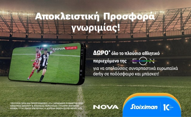 Οι επόμενες εβδομάδες αναμένονται “καυτές” και η Stoiximan έρχεται με μία σούπερ αποκλειστική προσφορά* γνωριμίας να φέρει στην τηλεόρασή σου και στο κινητό σου τα πιο μεγάλα derby σε ποδόσφαιρο και μπάσκετ!