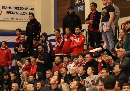 Στο κλειστό της Μενέν το «παρών» έδωσαν περίπου 50 οπαδοί του Θρύλου και αποθέωσαν την ομάδα του Πειραιά για την τεράστια νίκη της!