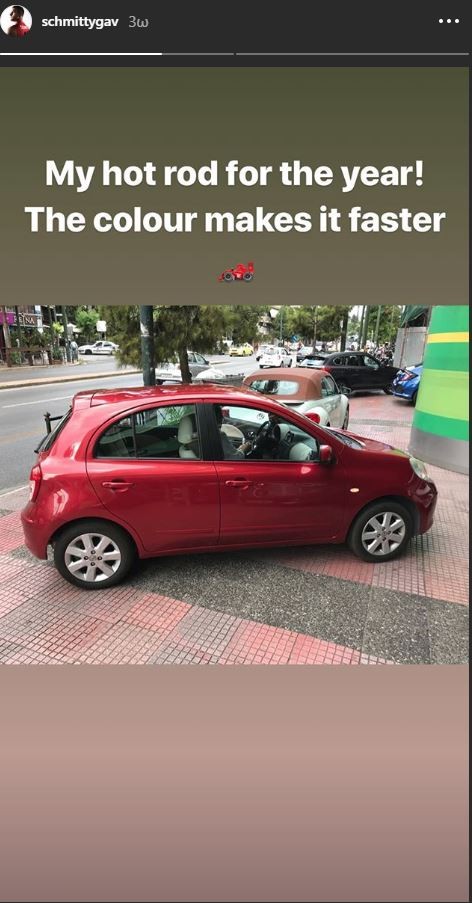«Το καυτό αμάξι μου για τη χρονιά! Το χρώμα το κάνει γρηγορότερο», έγραψε χαρακτηριστικά στο Insta story του, αναρτώντας τη σχετική φωτογραφία.