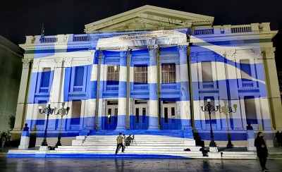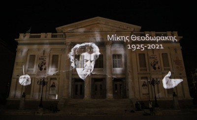 Συγκινητική προβολή 3d mapping στην πρόσοψη του Δημοτικού Θεάτρου Πειραιά, για τον μεγάλο μουσικοσυνθέτη, συγγραφέα και πολιτικό.