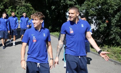 Oι δύο παικταράδες έκαναν τα... κόλπα τους στην προπόνηση της Εθνικής...