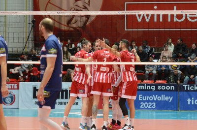 Οι «ερυθρόλευκοι» έχασαν με 3-2 σετ από την Μπουργκάς, ωστόσο προκρίθηκαν στους «8» του θεσμού χάρη στο υπέρ τους 3-0 του πρώτου αγώνα και τα δύο σετ που κέρδισαν στη Βουλγαρία.