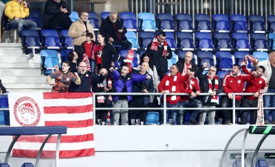 «Καυτή» ατμόσφαιρα από τον κόσμο του Ολυμπιακού στο Λέσκοβατς, στο ματς με την Τσουκαρίτσκι.